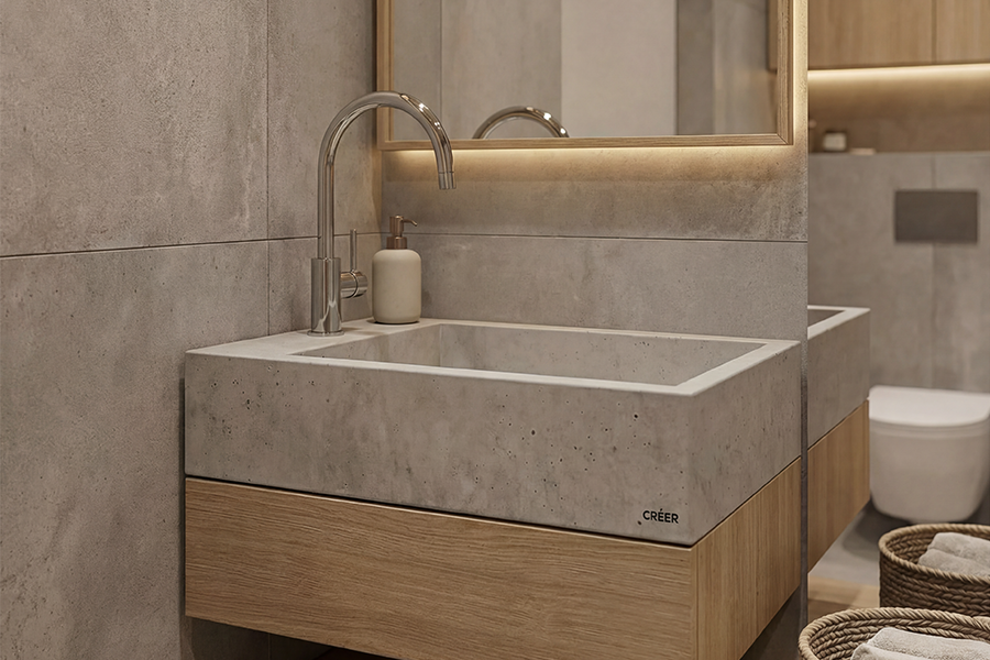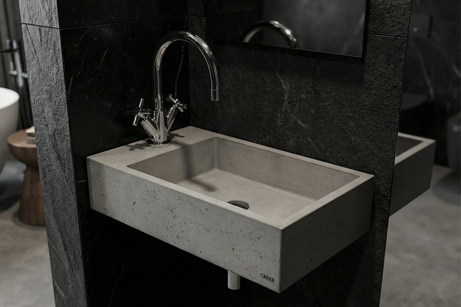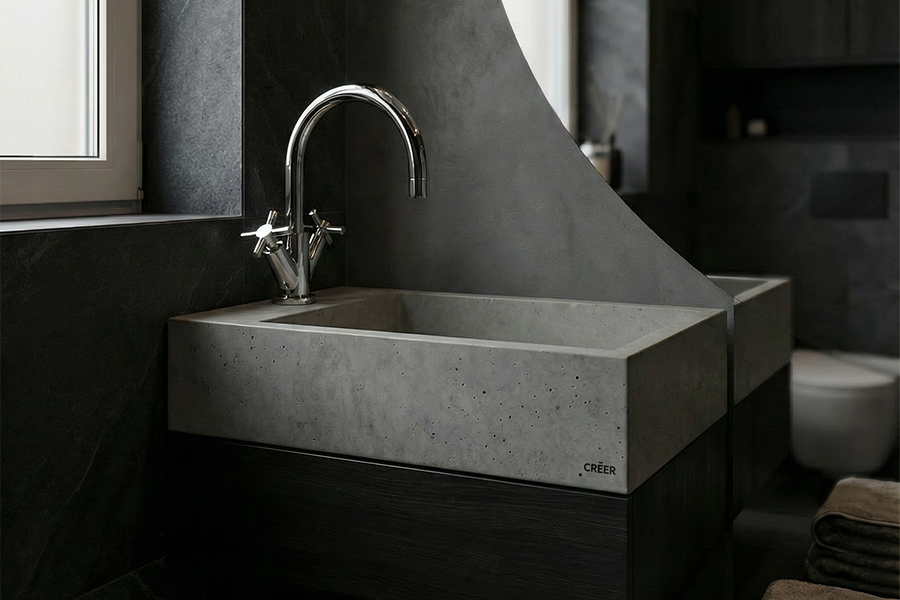 Minimalistické betonové umyvadlo navržené pro menší interiéry, kde se snoubí funkčnost s čistou estetikou. Díky svým kompaktním rozměrům je ideální volbou pro samostatná WC či menší koupelny, kde každý detail hraje roli.